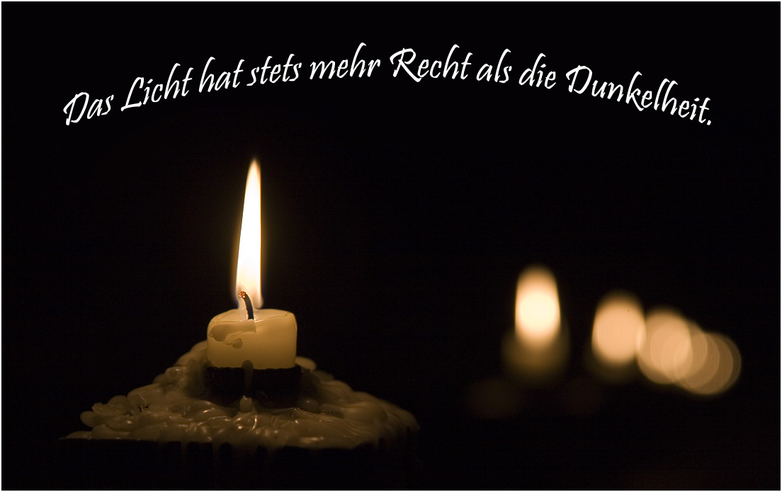 Wenn bei uns vielleicht künftig in der Nacht die Lichter ausgehen sollten und das deutsche Volk im Dunklen leben müsste, hätten wir dies selbst zu verantworten. Sprich: Wenn wir die Kernkraftwerke abschalten, die Kohlekraftwerke genauso (kein einziges Gaskraftwerk wurde bisher neu gebaut), die Windräder nahezu stillstünden, die Sonne im Winter kaum mehr schiene und/oder wenn der Ökostrom des Nordens per se nicht in den Süden transportiert werden kann, weil wir es versäumen, Fernleitungen zu bauen, dann kommt halt in einigen Gebieten irgendwann kein Strom mehr aus der Steckdose und wir müssen wie früher Kerzen anzünden: