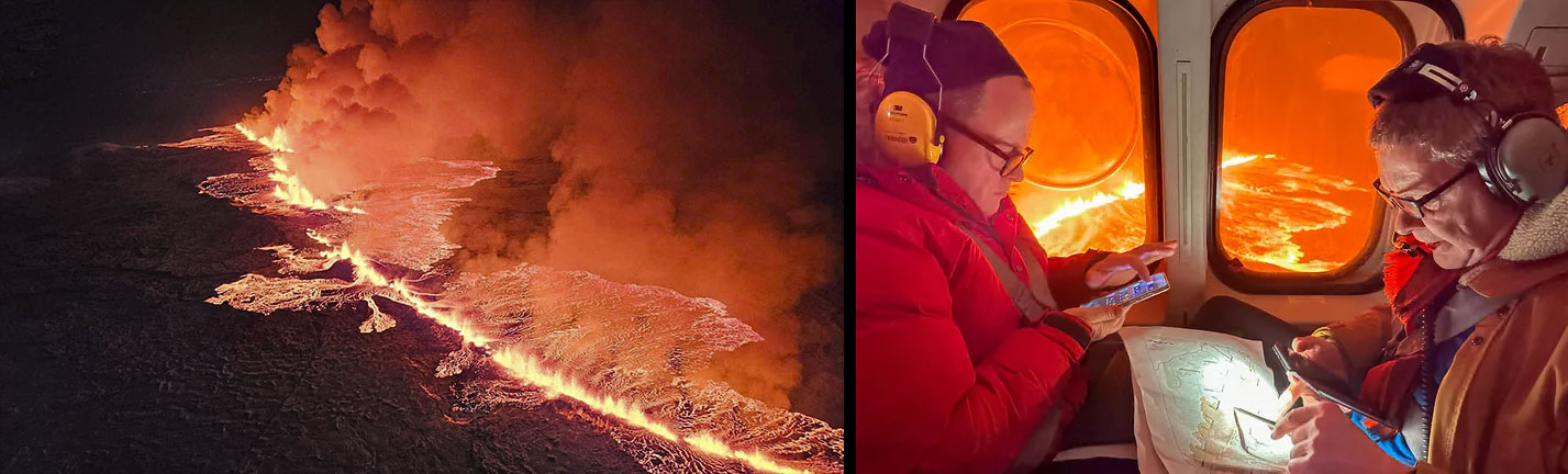 Naja, die Antwort fällt nicht besonders schwer. Siehe Bild unten: Fliegen wir dafür mit dem Satelliten von Italien Richtung NW, über den Atlantik zur Vulkaninsel Island, und schauen auf die Halbinsel Reykjanes, wo innerhalb von 3 Jahren in diesen Tagen zum 7. Male eine Erdspalte aufriss, die nunmehr eine der größten Attraktionen bedroht, die die Insel zu bieten hat: Die BLAUE LAGUNE. An der Küste gut erkennbar das Fischerdorf Grindavik, mittlerweile komplett evakuiert; leben kann dort niemand mehr. Man kann darauf wetten, wann der Ort von der Landkarte komplett verschwindet.