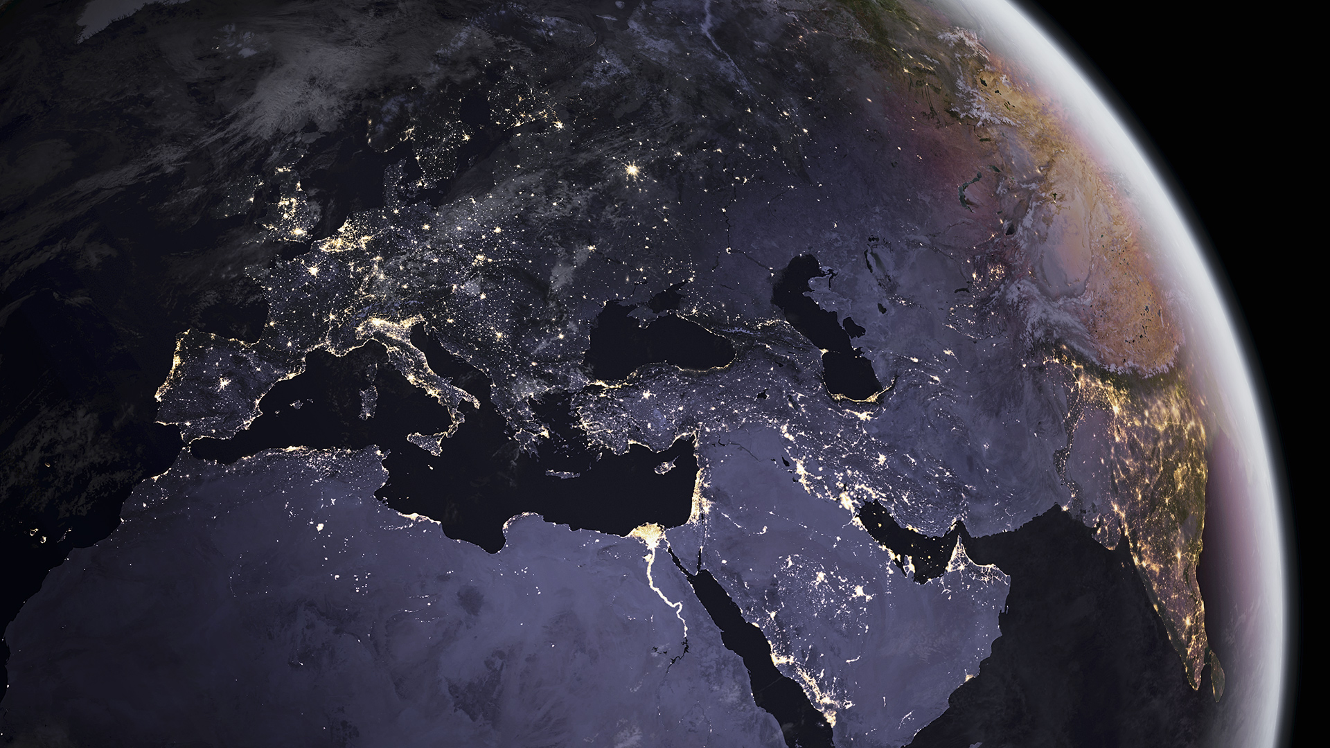 Zurück zum Ausblick vom Satelliten auf Europa und den Mittleren Osten: