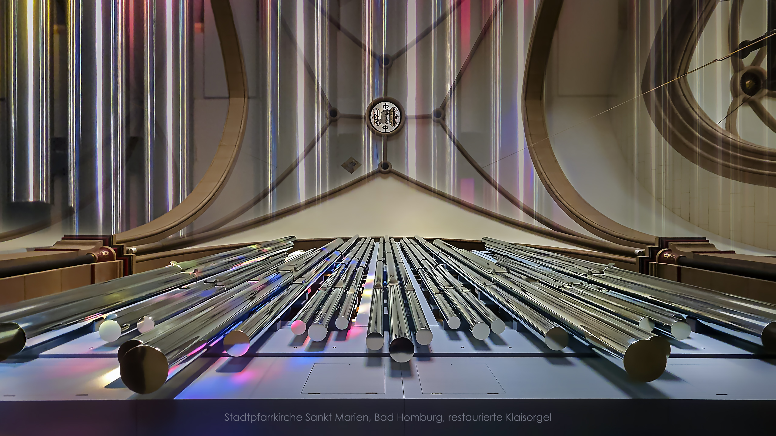 Die Buntglasfenster in der katholischen Kirche Sankt Marien in Bad Homburg stammen aus der Zeit nach dem Zweiten Weltkrieg und wurden von verschiedenen Künstlern geschaffen. Die Fenster sind eine wichtige und sehenswerte Ergänzung der modernen Kirche, die sich an der Stelle einer älteren Kapelle befindet. Sie sind nicht die Hauptattraktion, sondern eine bedeutende ästhetische Komponente der Innenarchitektur.
