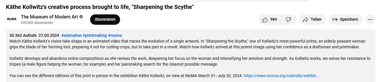 NACHTRAG: Eine weitere KOLLWITZ-Ausstellung im MoMA