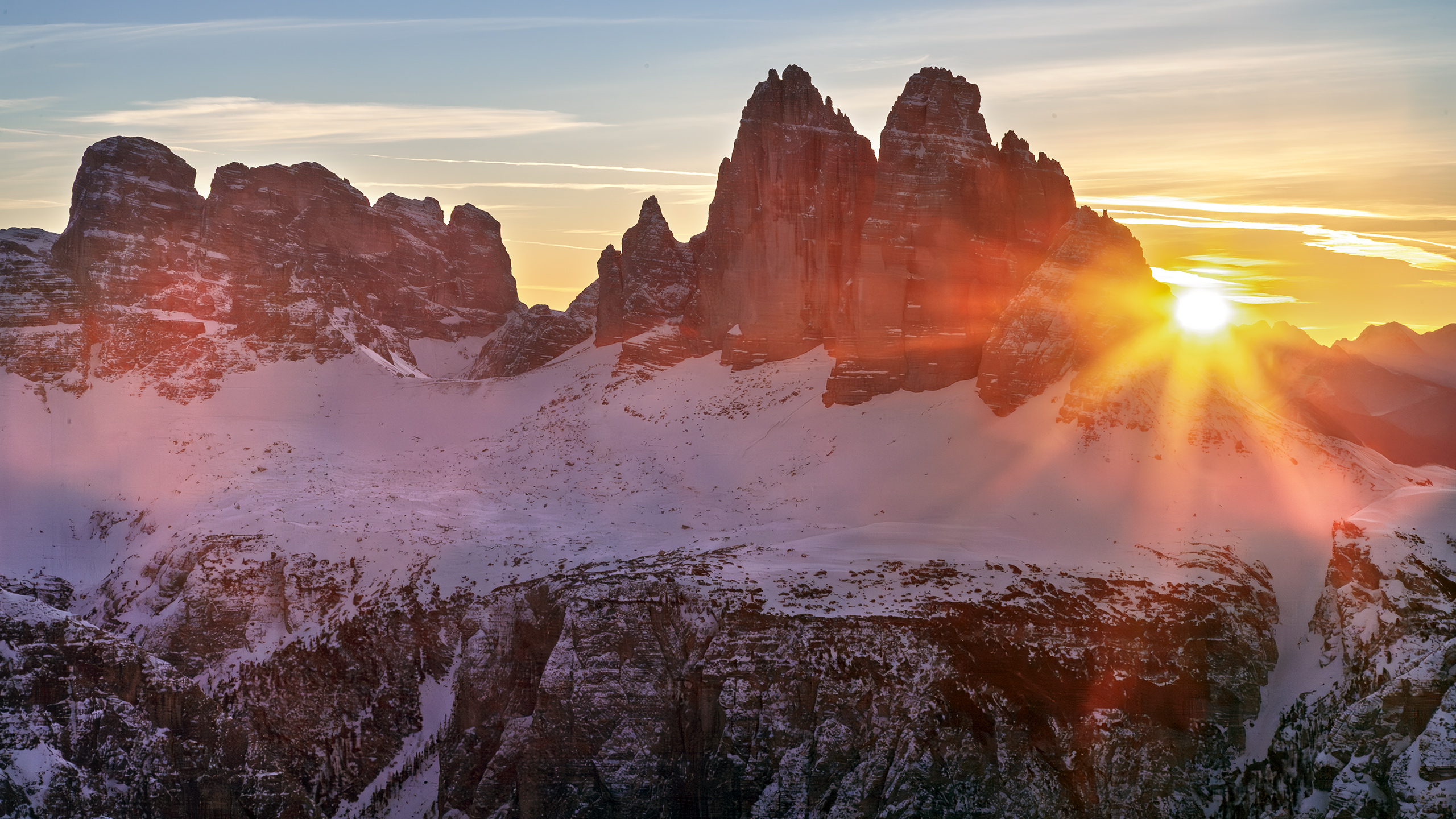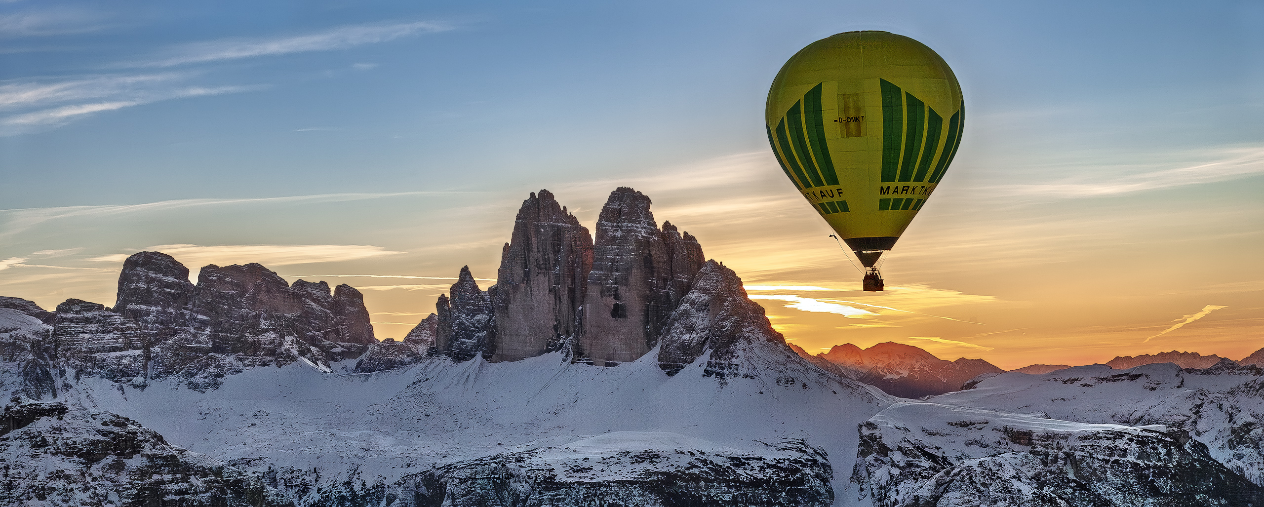 Wer sich einen Eindruck von oben verschaffen möchte, dem empfehle ich eine Fahrt mit einem Heißluftballon. An klaren Wintertagen bei guter Fernsicht aus ungefähr 4.500 Meter Höhe hat man dann – von West bis Ost – einen gigantischen Ausblick auf viele berühmten Dolomitengipfel wie die Geisler-Spitzen, die drei Tofanen, den Antelao, die Sorapiss, die Cristallo-Gruppe, die Hohe Gaisl, die Cadinis, den Dürrenstein, die Dreizinnen oder die Dreischusterspitze. Ganz im Hintergrund der Alpenhauptkamm, die Stubaier Alpen und die Zillertaler Alpen. 🙂