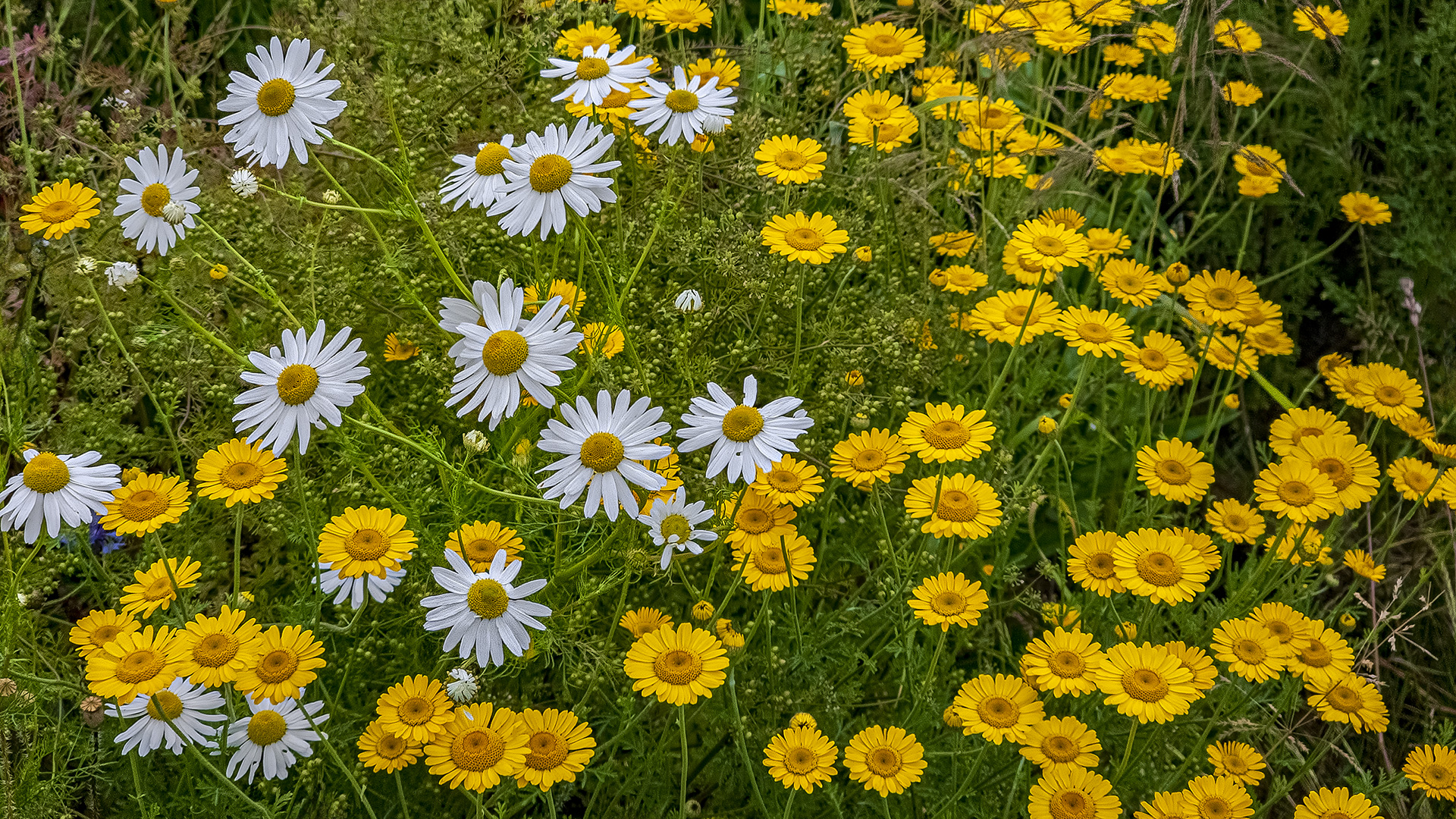 Es gibt ihn immer noch, den deutschen Feldhasen. Denn er erscheint als anpassungsfähig und wenig anspruchsvoll. Wenn man ihm einigermaßen Lebensraum verschafft, kann er damit klarkommen. Hier in Bad Homburg-Obereschbach haben wir einen so genannten Lernbauernhof (Rhein-Main), der ein Vorbild sein soll, wie man es besser macht. Daher achtet der “Lehrbauer” auf eine gesunde Mischung von Landwirtschaft und Natur zugunsten von Insekten, Vögeln und Co. Dieses Jahr hat er zum ersten Mal gleich drei große Äcker zu Blumenwiesen umgestaltet. Was dort konzentriert nebeneinander blüht (alles auf einmal!), toppt jede Vorstellungskraft. Als Fotograf könnte man sich gefühlt “totfotografieren”. Nur mit den Insekten und den Vögeln will es nicht klappen. Woher sollen sie auch kommen, wenn die Umgebung landwirtschaftlich intensiv genutzt wird? Um Nachhaltigkeit zu erzeugen, dürfen solche Blühwiesen keine Einmalevents sein.