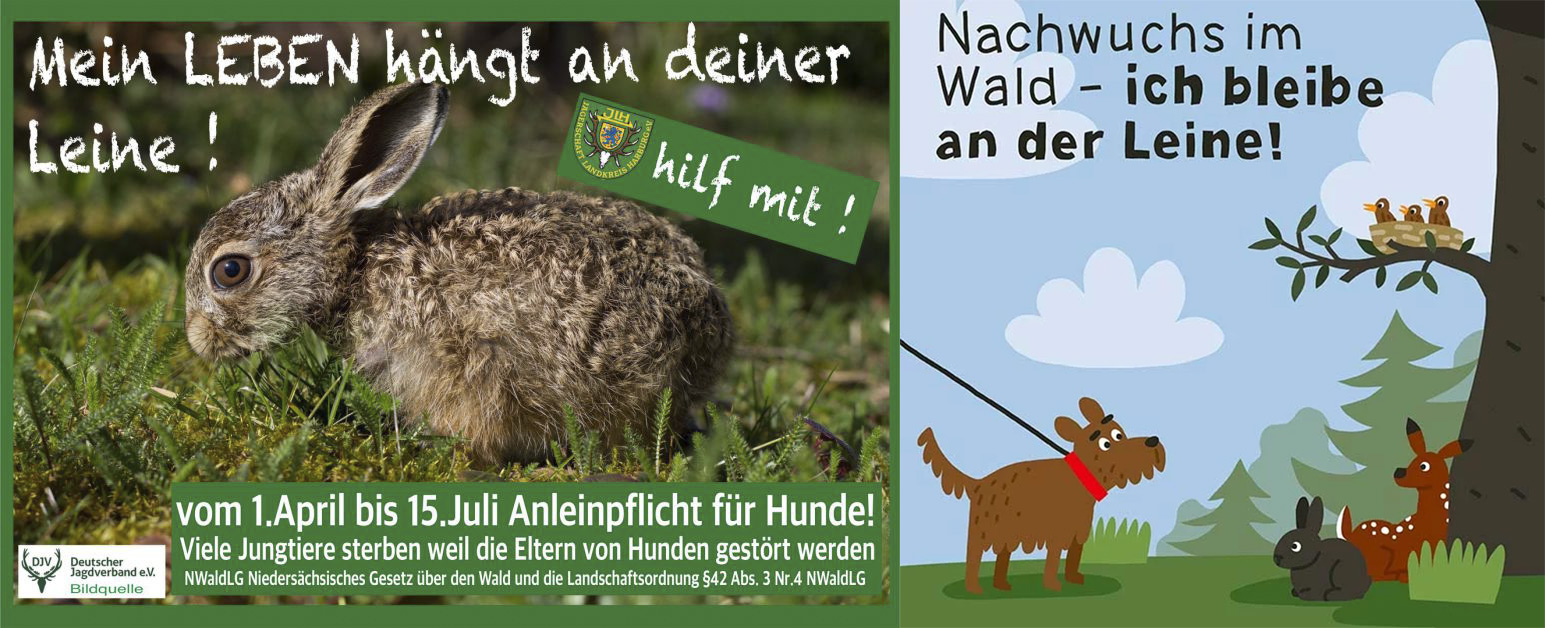 Solche Schilder sind kaum zu übersehen. Und jeder sollte verstehen, was gemeint ist. Gilt aber nicht für jeden Hundebesitzer. Mancher wundert sich dann plötzlich, dass sein friedlicher, ja langweiliger Vierbeiner (einige halten auch mehrere), der angeblich niemanden erschrecken kann und erst recht keinem ein Haar krümmt, sich ganz spontan, ohne vorherige Erlaubnis und explosionsartig an einer Hasen-Jagd beteiligt. Halleluja!! Oder Rehkitze aufscheucht, oder die Nester von am Boden brütenden Vögel plündert … oder auf einen harmlosen Fotografen zustürmt, als wenn es um Leben und Tod ginge. :-((